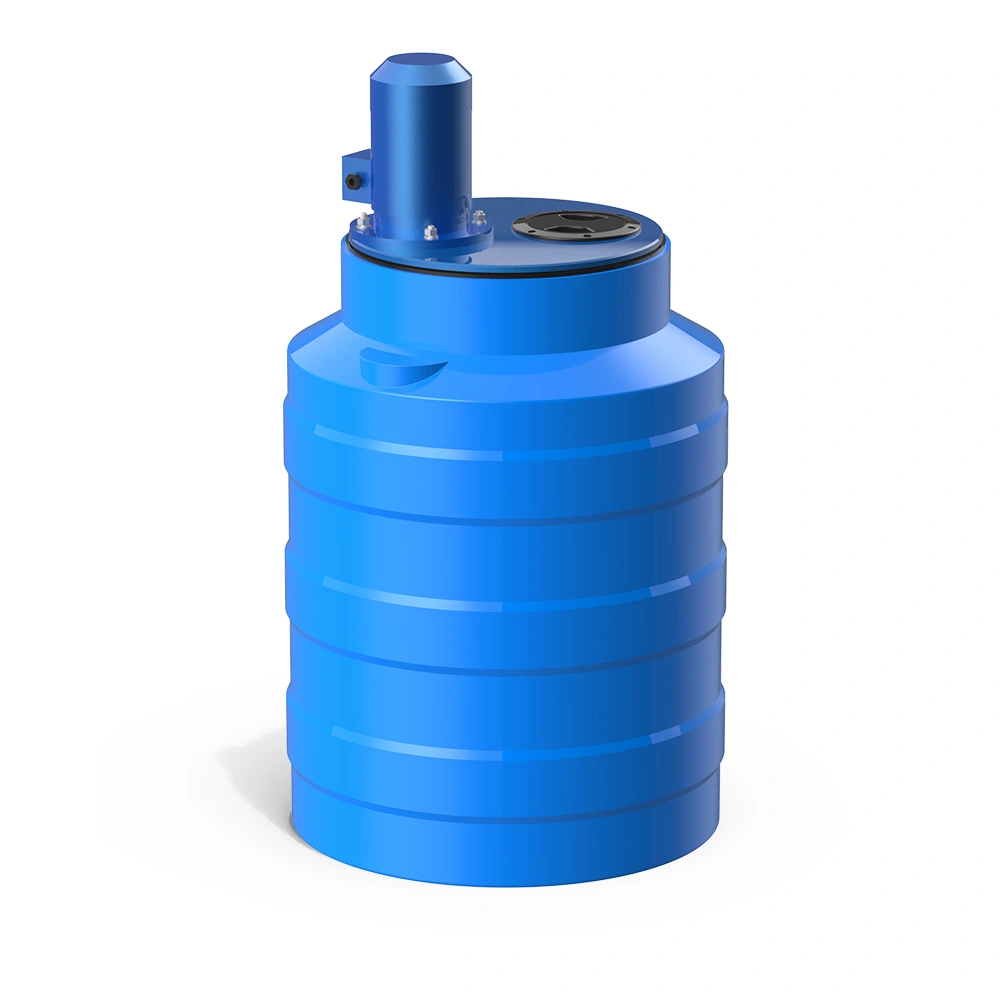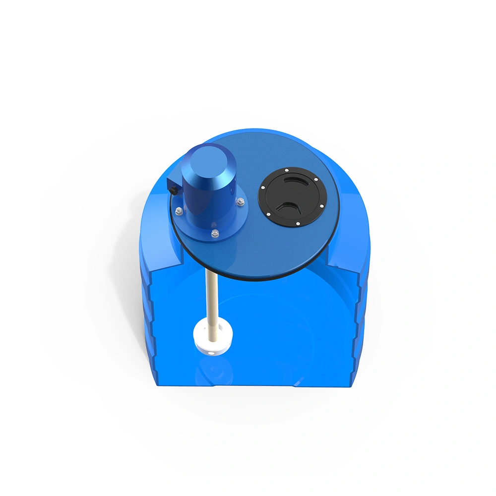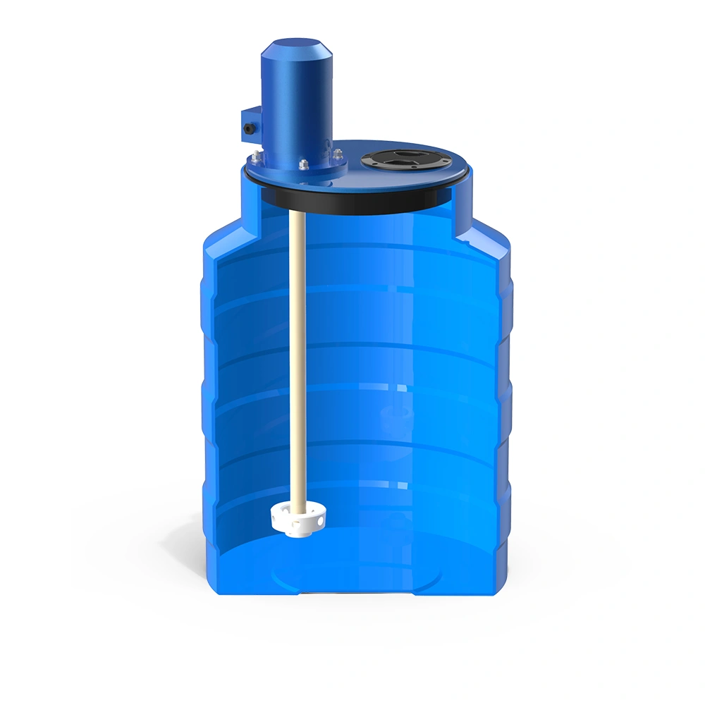 Ёмкость изготовлена из пищевого полиэтилена, устойчива к механическим нагрузкам и химически нейтральна. Крышка, вал и рабочее колесо выполнены из прочного композитного материала, что гарантирует надёжность и стойкость к агрессивным средам.