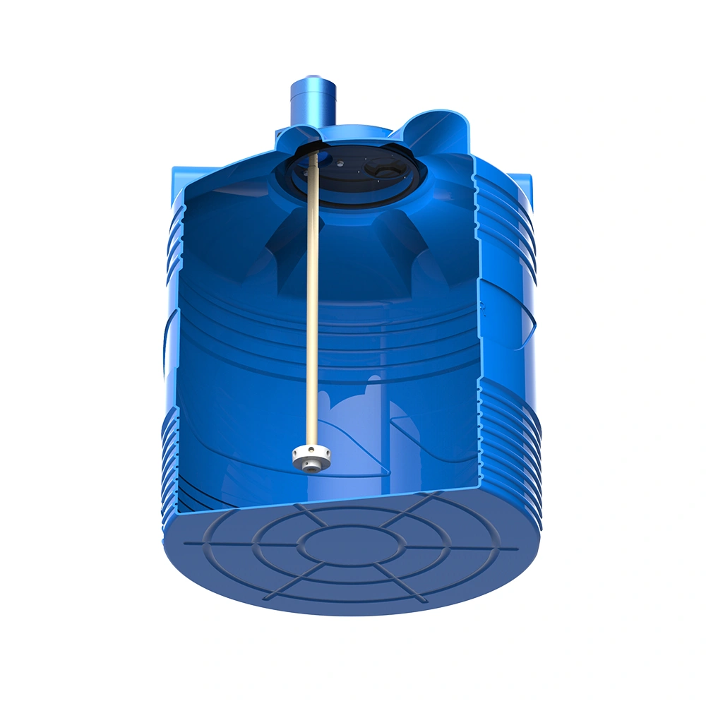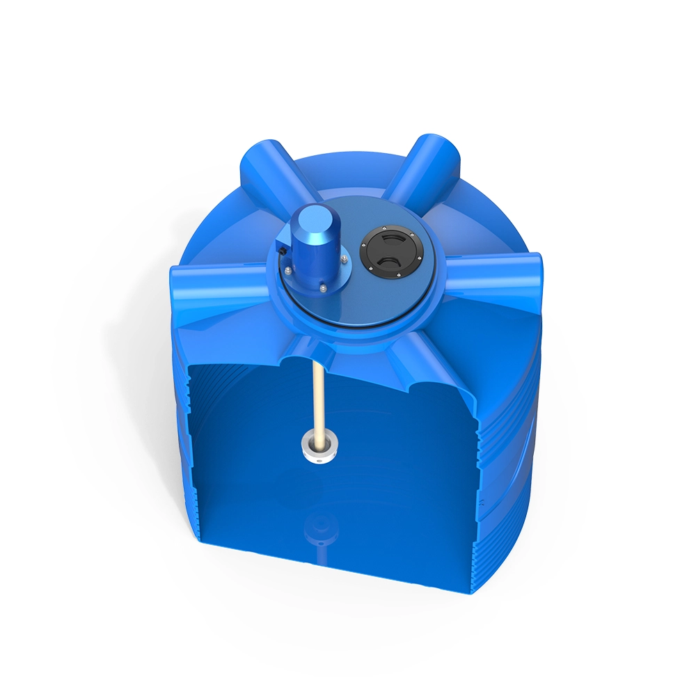 Ёмкость изготовлена из пищевого полиэтилена, устойчива к механическим нагрузкам и химически нейтральна. Крышка, вал и рабочее колесо выполнены из прочного композитного материала, что гарантирует надёжность и стойкость к агрессивным средам.