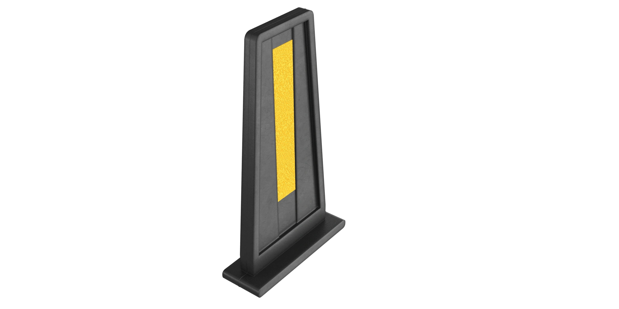 Формовое изделие из резины черного цвета. С двух сторон нанесена светоотражающая пленка желтого цвета. Используется совместно с делиниатором КР-1,0 для улучшения видимости
