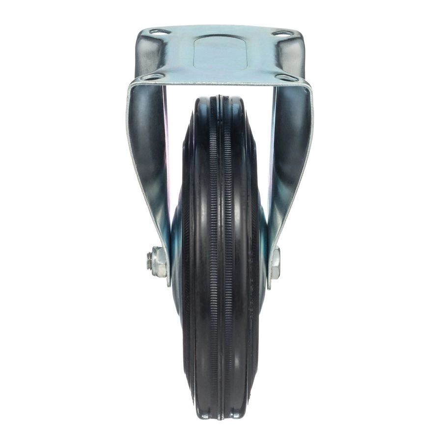 Колесо неповоротное 4002-200, диаметр 200мм., грузоподъемность 185кг. Колеса из черной литой резины, центр из двух гальванизированных дисков из штампованной стали. Роликовый (игольчатый) подшипник расположен в углублении, выдавленном под прессом, и содержит цилиндрические ролики подшипника. Неповоротный кронштейн изготовлен прессованием из листовой стали. Возможно применение на относительно грубых полах складов, заводов, производственных и строительных площадках. Данные колеса можно использовать на неровных поверхностях, во влажной окружающей среде и использовании вне помещения, не рекомендуется применять в среде с органическими растворителями, хлорированными веществами, гидрокарбонатами и минеральными маслами. Температура эксплуатации от -20 до +70С.