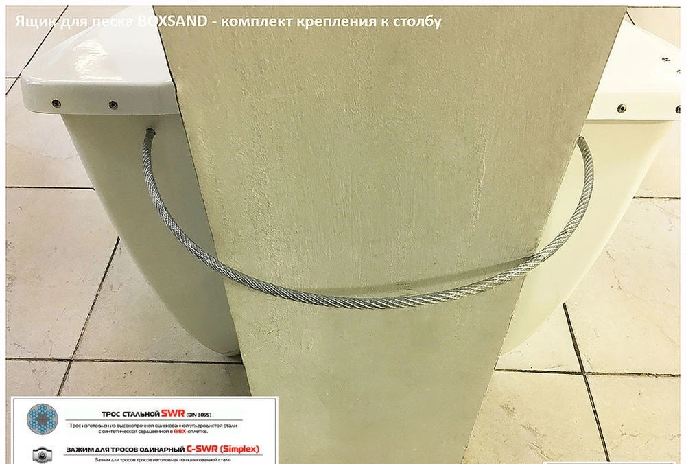 | Стальной трос | Защищён ПВХ-оплёткой для предотвращения коррозии. |