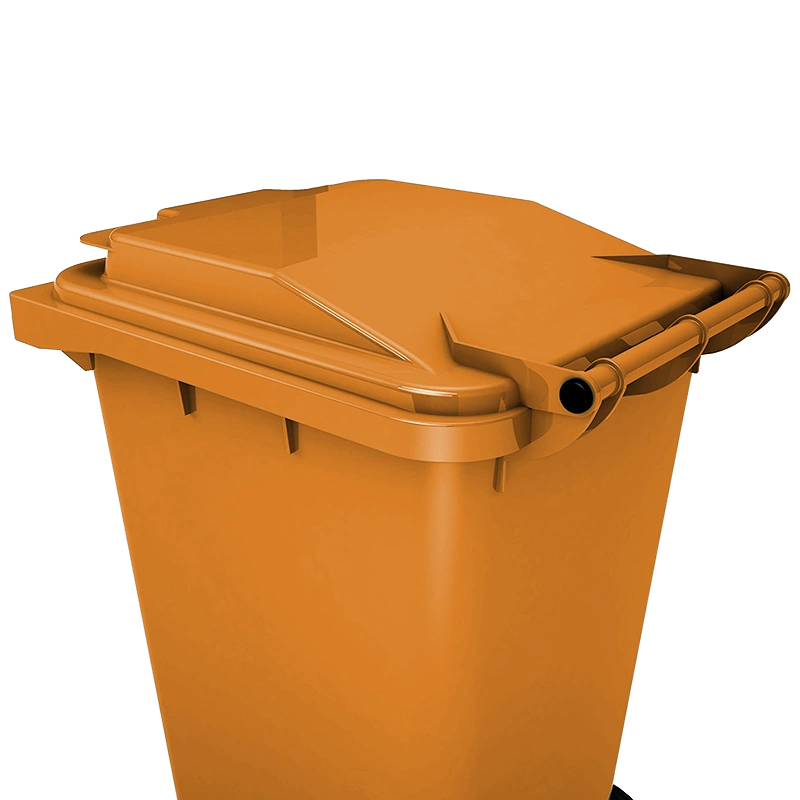 Контейнер 240л производится методом литья под высоким давлением из высококачественного полимерного сырья – ПЭНД (первичный полиэтилен низкого давления). Это позволяет эксплуатировать мусорный бак при температур от -40 до +50 градусов С, что очень актуально для российских климатических условий.