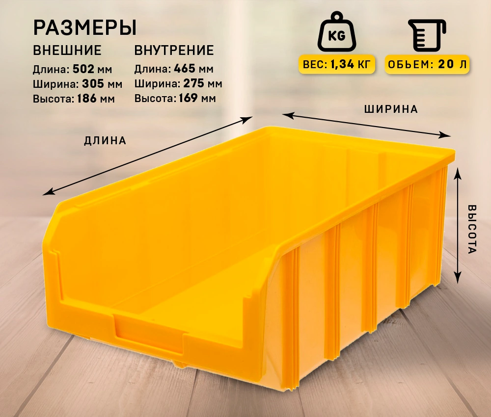 Пластиковый ящик Стелла-техник V-4 синий (502х305х184мм.), 20 литров, подходит для хранения мелких предметов, таких как: запчасти, детали, заготовки и т.п. Контейнер имеет удобную форму. Возможность наращивания передней стенки позволит наполнить ящик до верха и вместить гораздо большее количество деталей. Для быстрого и удобного поиска контейнера в складском помещении на передней стенке предусмотрен карман для размещения ярлыка с описанием. Изделие имеет удобные ручки для перемещения и специальные крепления для наращивания нескольких ящиков в высоту. Объем составляет 20 литров, корпус выполнен из пропилена Вес 1,2кг. Габариты 502x305x184мм. Технические характеристики ящика V-4: длина 502мм., ширина 305мм., высота 184мм. Объем 20л. Температура эксплуатации от -20 до +70С.