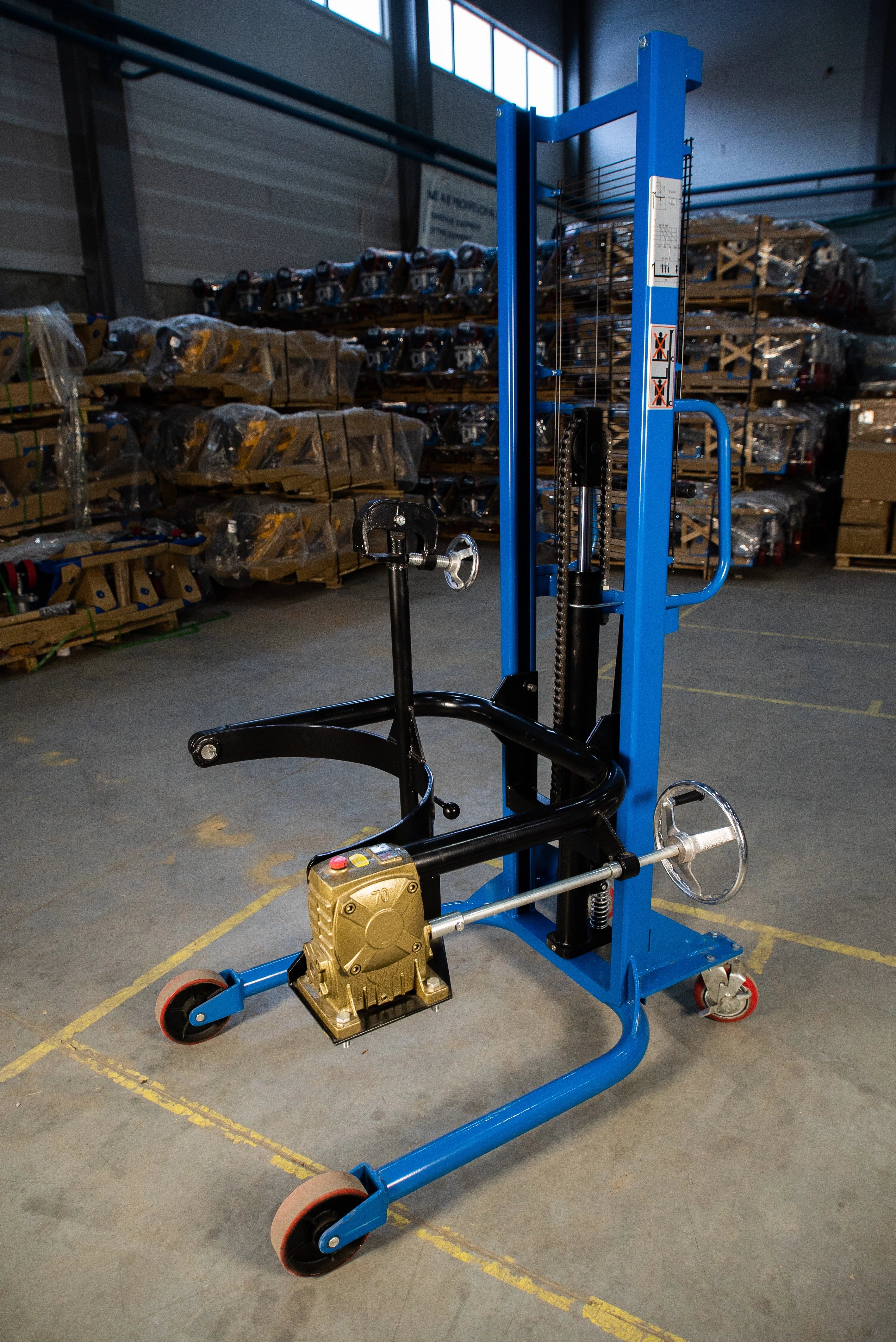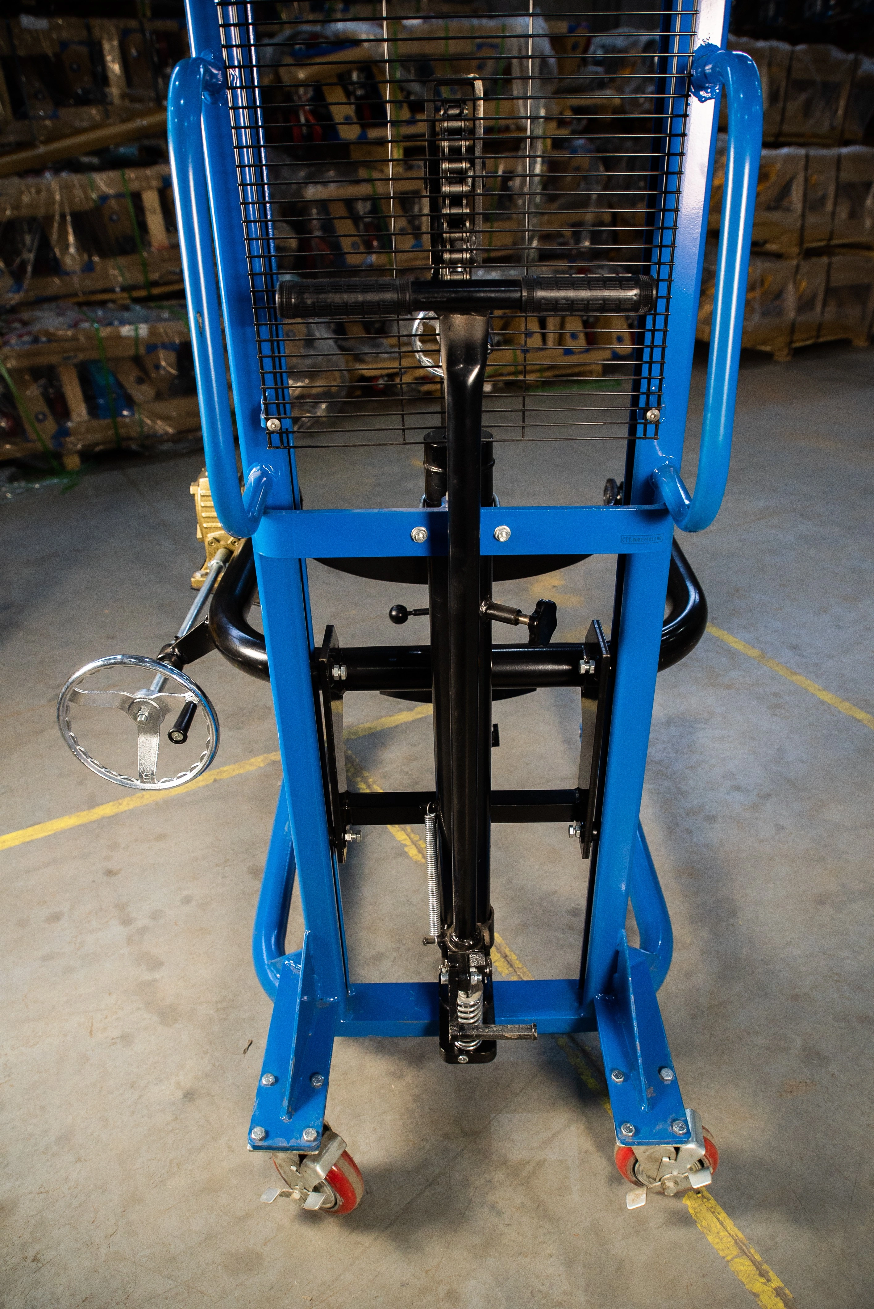 Штабелер бочкокантователь TOR СОТ 0.35Т/2.0М— Специальный штабелер, сделанный для поднятия, перевозки и кантования (наклона, переворота) бочек. Модель оснащена надежным держателем бочек и червячным ручным редуктором для переворота бочки. Штабелер простой в обращении и не прихотлив в обслуживании. Максимальный вес бочки может быть 350 кг, что в принципе покрывает практически все материалы, тарированные в бочки. К минусам данной модели можно отнести лишь то, что бочку брать и ставить мы можем только с ровных площадок: пол, полки. С помощью этого штабелера не получиться работать с бочками с паллет. Высота подъема в 2.0 метра позволяет ставить бочки в 2 яруса.Складская техника производства TOR – это соединение современных разработок и решений, проверенных временем. Так компания добивается качества и простоты использования своего оборудования. В модельном ряду найдутся как экономичные модели, так и модели для интенсивных нагрузок. Штабелер бочкокантователь TOR СОТ 0.35Т/2.0М— Специальный штабелер, сделанный для поднятия, перевозки и кантования (наклона, переворота) бочек. Модель оснащена надежным держателем бочек и червячным ручным редуктором для переворота бочки. Штабелер простой в обращении и не прихотлив в обслуживании. Максимальный вес бочки может быть 350 кг, что в принципе покрывает практически все материалы, тарированные в бочки. К минусам данной модели можно отнести лишь то, что бочку брать и ставить мы можем только с ровных площадок: пол, полки. С помощью этого штабелера не получиться работать с бочками с паллет. Высота подъема в 2.0 метра позволяет ставить бочки в 2 яруса. Особенности штабелера: •Специальное исполнение для кантования бочек •Защитная решетка для защиты оператора от цепей и груза •Надежный гидравлический механизм подъема и кантования. Подробные технические характеристики штабелера можно посмотреть ниже в разделе технические характеристики. При выборе штабелера обращайте внимание на его основные эксплуатационные характеристики, которые важны для вас. Если нужна консультация специалиста, воспользуйтесь удобным для вас способом связи для получения исчерпывающей информации по выбору штабелера.