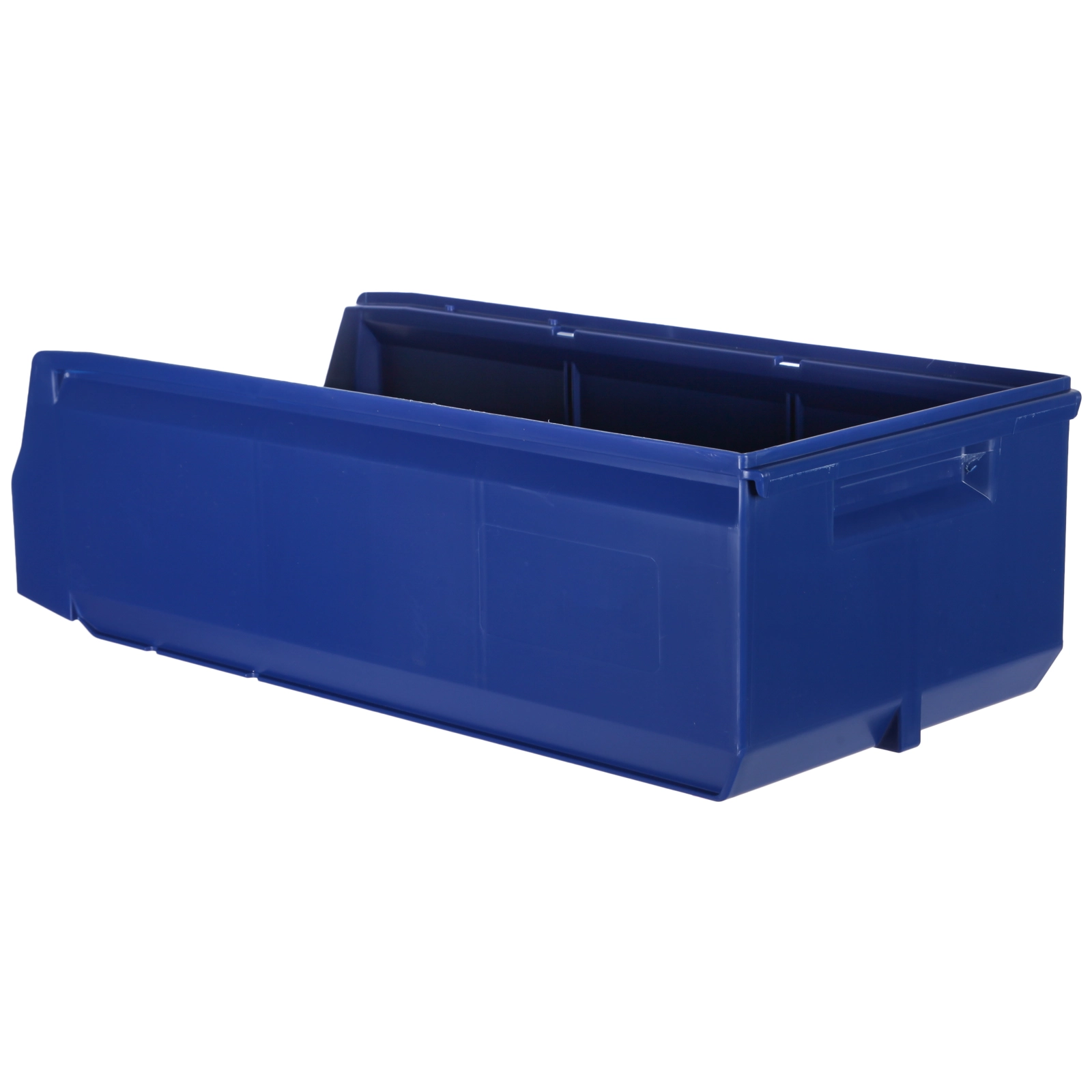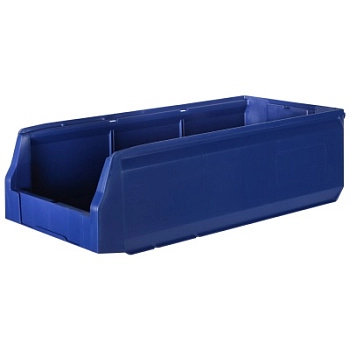 За счет убранных внутрь ребер жесткости контейнера достигается экономия пространства на 15%. Шероховатая поверхность дна предотвращает скольжение на стеллажах и лентах транспортеров, а специальный профиль придает прочность и жесткость боковым стенкам контейнера.