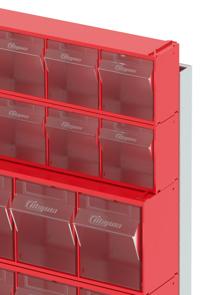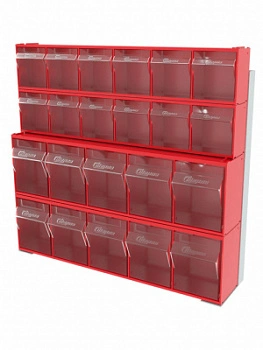 Стойка настенная/настольная Стелла-техник 401-00-02-02 (610х150х500) представляет собой удобную систему хранения, которая подойдет для выставочных залов, магазинов, офисов, складов. Основание можно установить на стол или закрепить на стену, привернув его анкерными болтами или саморезами (в комплект не входят). В комплект стойки 401-00-02-02 входит: Рама FOX (610х150х500) V401 - 1 шт.; Короб откидной Стелла-техник F-600-6 , 600х96х112мм, 6 ячеек, красный, прозрачный – 2 шт.; Короб откидной Стелла-техник F-600-5 , 600х140х168мм, 5 ячеек, красный, прозрачный – 2 шт.; Упаковка. Преимущества стойки: Металлическое основание; Значительная устойчивость; Хорошая вместимость; Длительный срок службы.