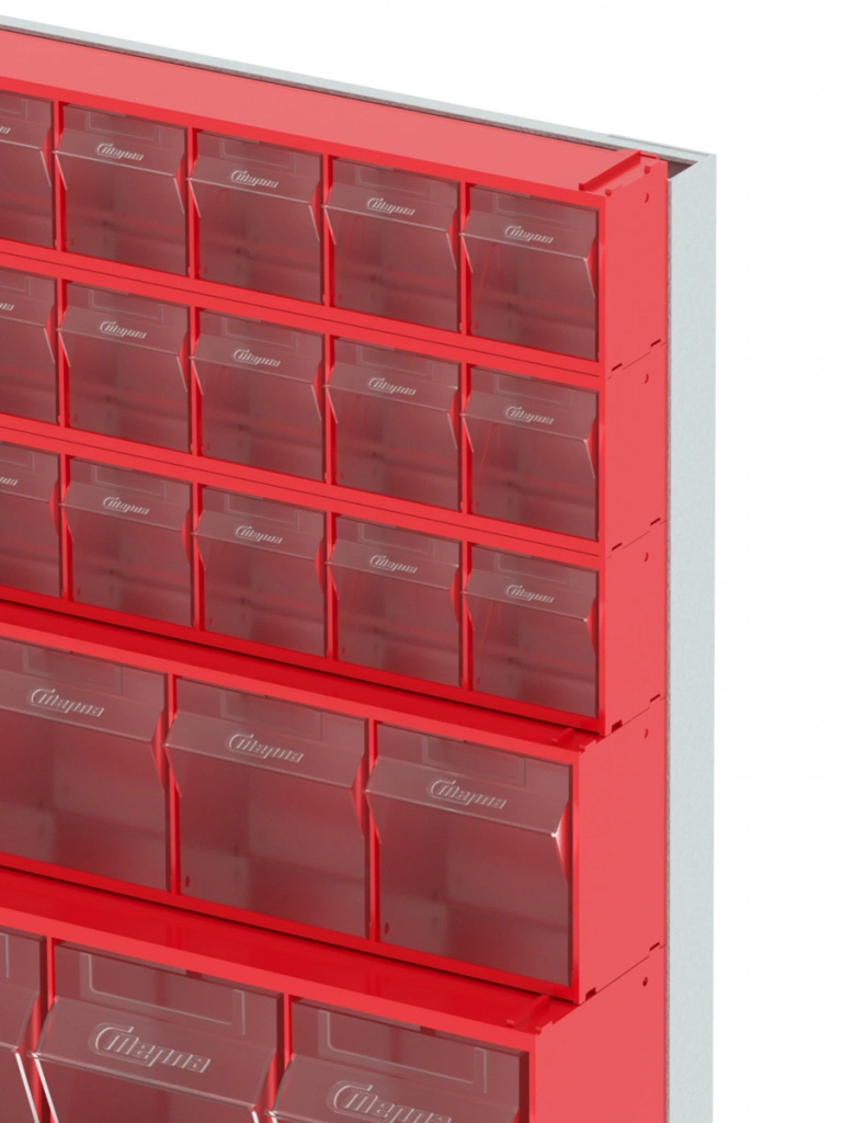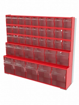 Стойка настенная/настольная Стелла-техник 401-03-01-01 (610х150х500) представляет собой удобную систему хранения, которая подойдет для выставочных залов, магазинов, офисов, складов. Основание можно установить на стол или закрепить на стену, привернув его анкерными болтами или саморезами (в комплект не входят). В комплект стойки входит: Рама FOX (610х150х500) V401 - 1 шт.; Короб откидной Стелла-техник F-600-9 , 600х68х78мм, 9 ячеек, красный, прозрачный - 3 шт.; Короб откидной Стелла-техник F-600-6 , 600х96х112мм, 6 ячеек, красный, прозрачный – 1 шт.; Короб откидной Стелла-техник F-600-5 , 600х140х168мм, 5 ячеек, красный, прозрачный – 1 шт.; Упаковка. Преимущества стойки: Металлическое основание; Значительная устойчивость; Хорошая вместимость; Длительный срок службы.
