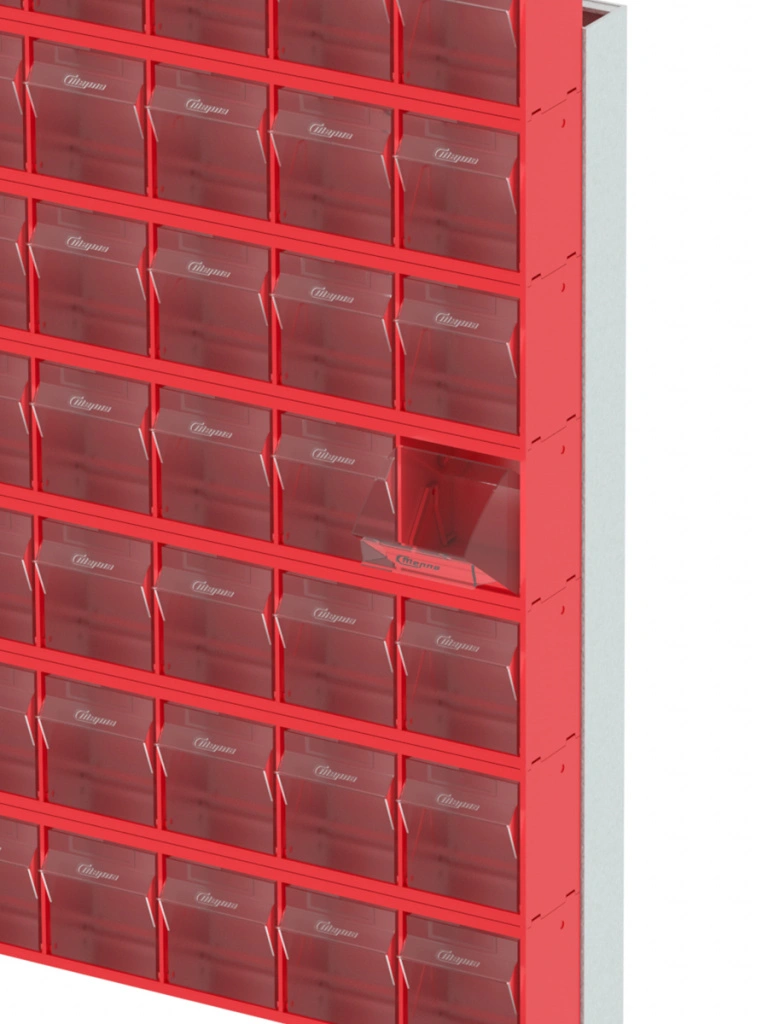 Стойка настенная/настольная Стелла-техник 401-07-00-00 (610х150х500) представляет собой удобную систему хранения, которая подойдет для выставочных залов, магазинов, офисов, складов. Основание можно установить на стол или закрепить на стену, привернув его анкерными болтами или саморезами (в комплект не входят). В комплект стойки входит: Рама FOX (610х150х500) V401 - 1 шт.; Короб откидной Стелла-техник F-600-9 , 600х68х78мм, 9 ячеек, красный, прозрачный - 7 шт.; Упаковка. Преимущества стойки: Металлическое основание; Значительная устойчивость; Хорошая вместимость; Длительный срок службы.