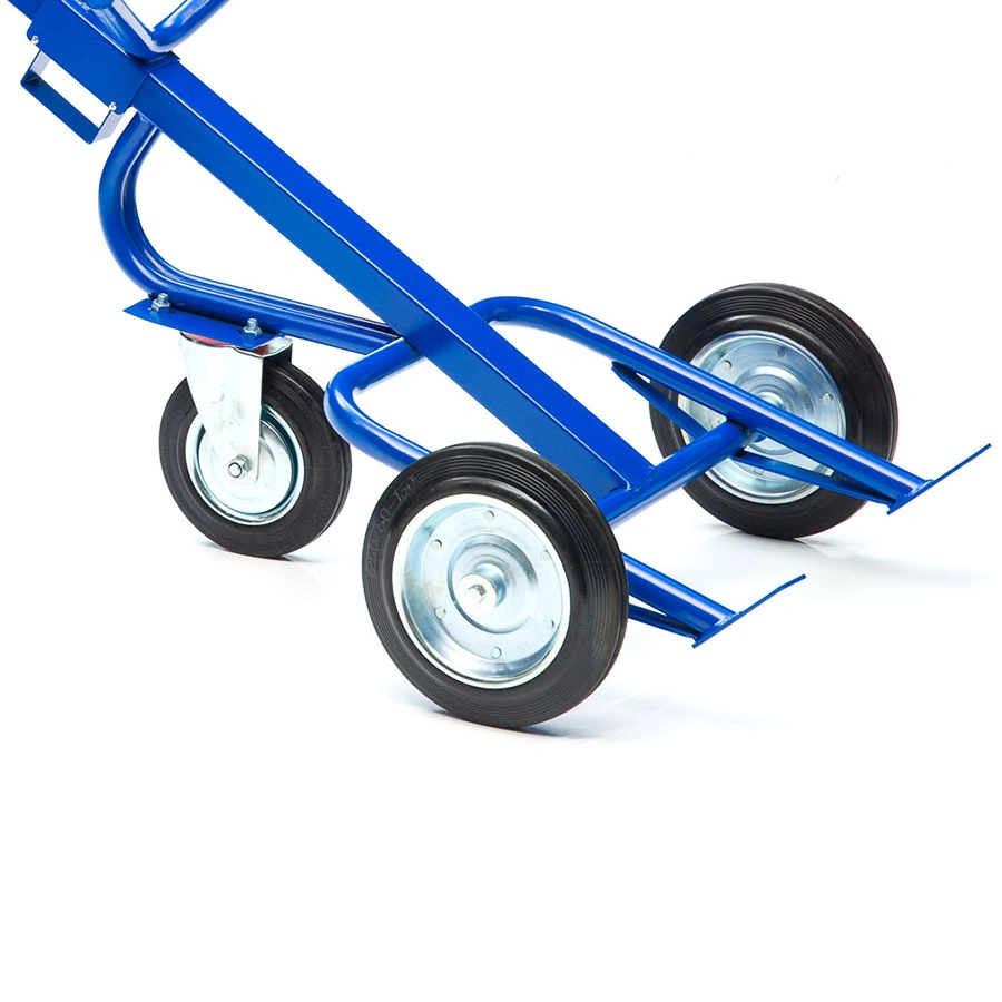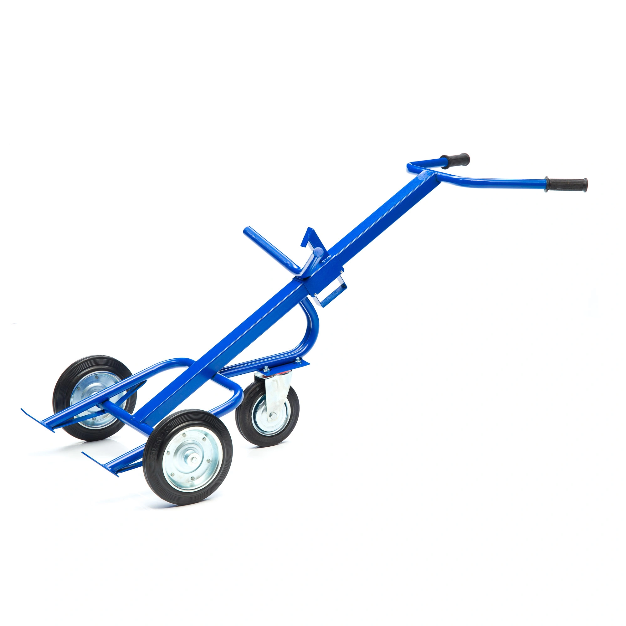 Грузовая специализированная тележка для бочек КБ-350-И используется на строительных площадках, оптовых базах, в крупных магазинах и на заводах для перемещения двухсотлитровых бочек. Конструкция сварная с усиленной рамой. Предусмотрены держатели для неподвижной фиксации бочек объемом 200л. Окрашенная металлическая конструкция не чувствительна к коррозии. Колеса изготовлены из высококачественной резины и рассчитаны на длительный срок службы. Для легкого перемещения предусмотрено дополнительное откидное колесо диаметром 200мм. Тележкой легко управлять, благодаря удобной высокой рукоятке. Тележка комплектуется: метизами для крепления и промышленными колесами из черной стандартной резины, от всемирно известного, ведущего итальянского производителя Tellure Rota, диаметром 250мм. Грузоподьемность до 350кг.