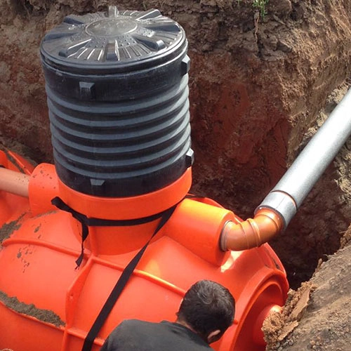 В комплект входит винтовая крышка. При установке ёмкости на определенную глубину использутся удлиняющие горловины, которые при этом вкручиваются в тело емкости, а крышка закручивается на горловину.